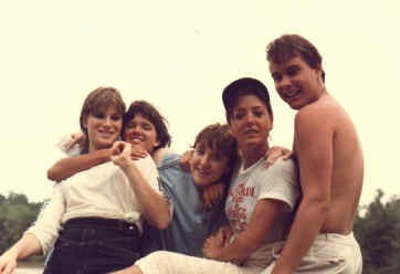 This was taken at someone's camp..just can't remember who's!!! Jackie Ring, Kitty McElligot, Yvonne Michot, Trudy Dumesnil and David Koke..and they were ALL 100% sober!!!! |