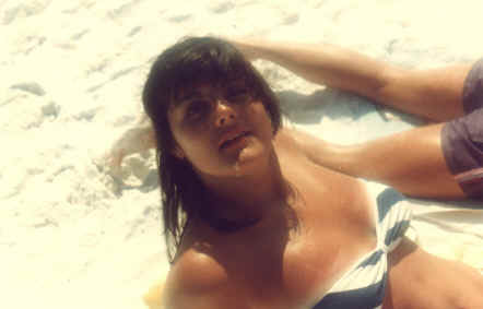 With the rolled up bandana around the head...Pam was so cool...check out the shades! |