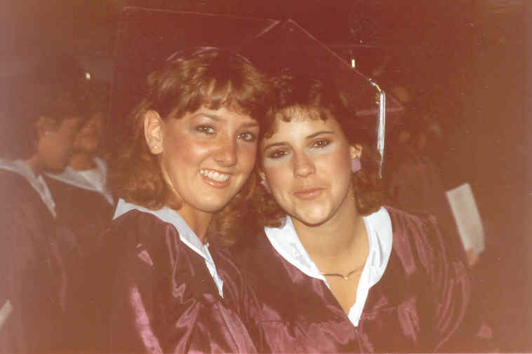 Karen Begnaud...doing..not sure what...but gotta love the Raccoon eyes the girls used to wear back then!! |